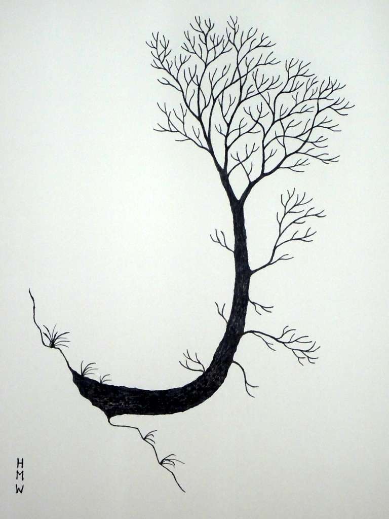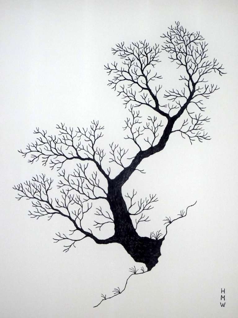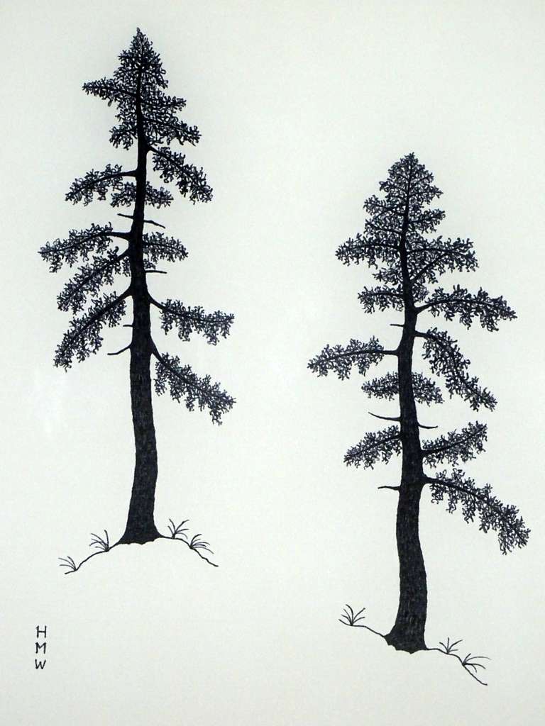 Black and white paintings on Silk. Framed with a double mountboard, glass and a deep, black frame.